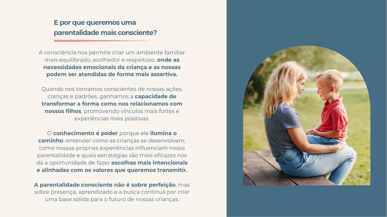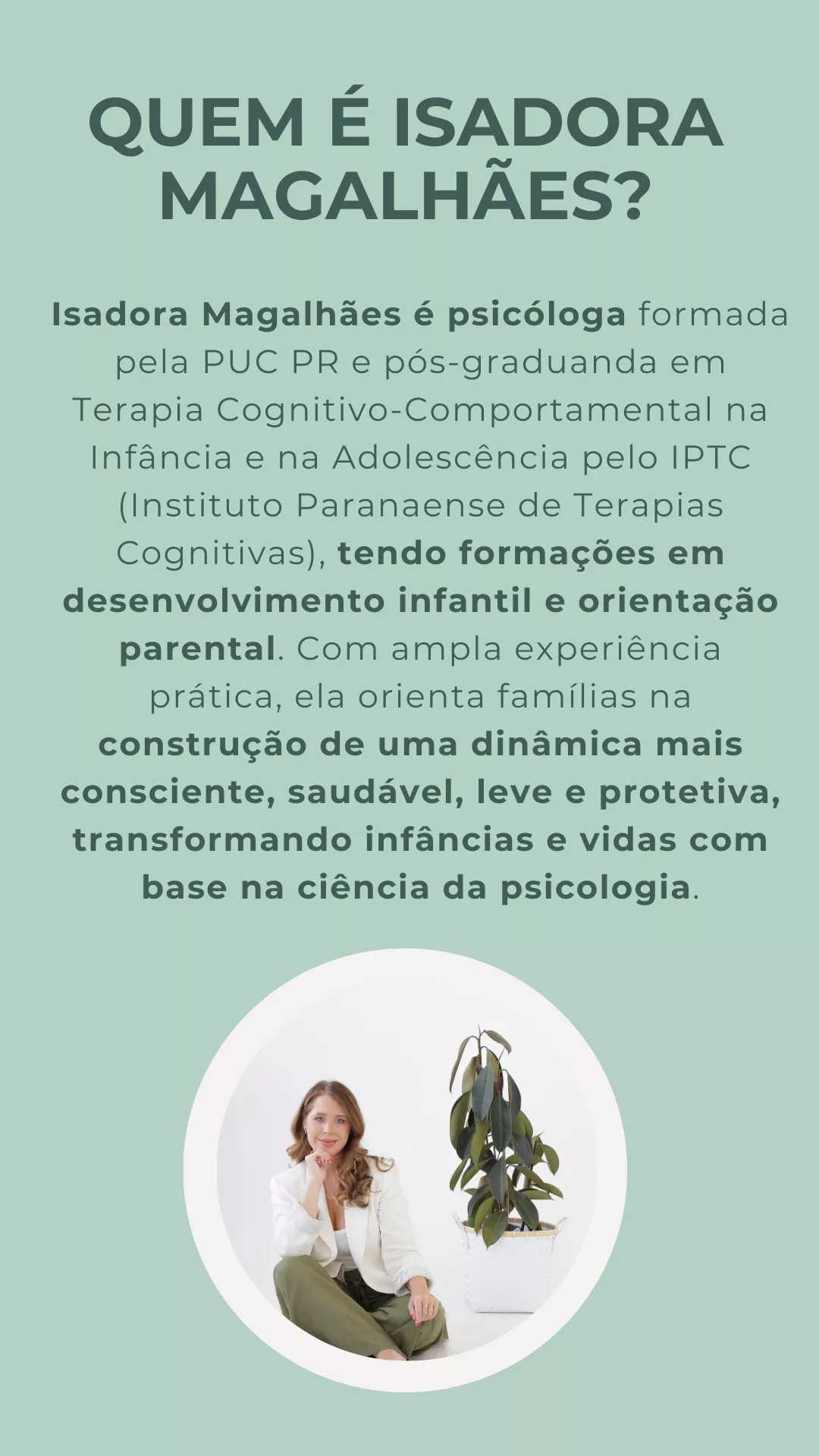 Essa constatação a levou a compreender a força da orientação e da psicoeducação parental como uma bússola, capaz de guiar pais e mães em direção a caminhos mais saudáveis e equilibrados na criação de seus filhos.