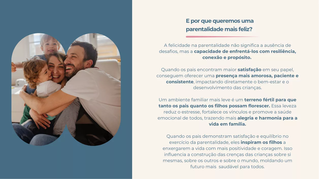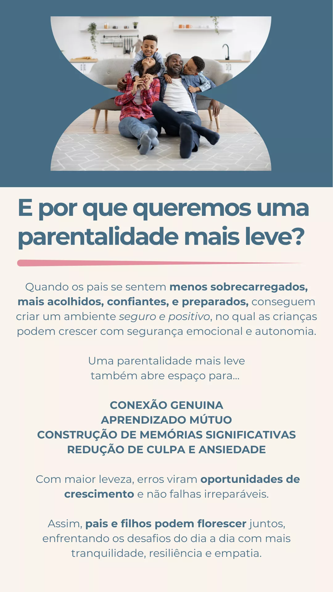 O Laboratório de Pais nasceu do seu desejo de impactar mais famílias, ajudando-as a construir uma experiência de parentalidade mais leve, consciente e feliz.